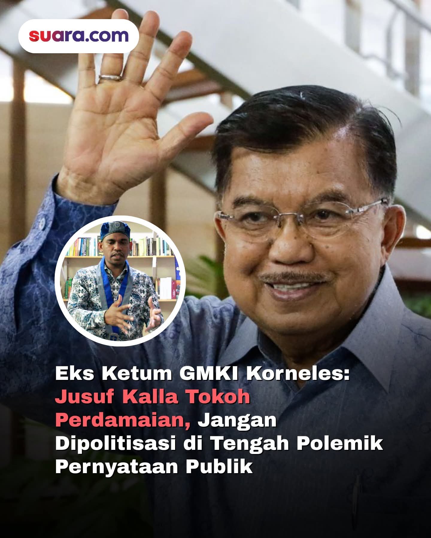 Korneles Galanjinjinay, eks Ketua Umum Gerakan Mahasiswa Kristen Indonesia (GMKI) periode 2018–2020 dan Wakil Ketua Umum Partai Kristen Indonesia (Parkindo) 2021–2026, menilai tuduhan terhadap Jusuf Kalla tidak berdasar jika melihat rekam jejaknya dalam menjaga perdamaian bangsa.