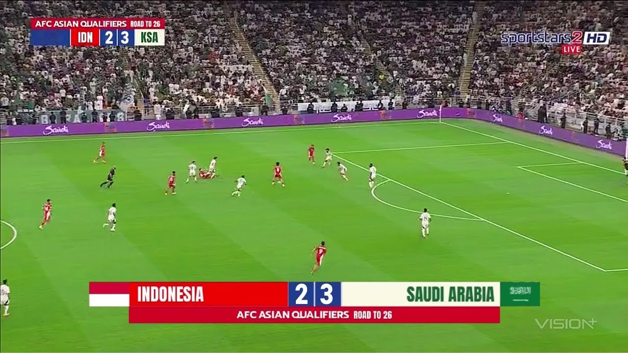Timnas Indonesia menelan kekalahan dari Arab Saudi di Kualifikasi Piala Dunia 2026 ronde keempat. Garuda kalah tipis 2-3 dari The Green Falcons.