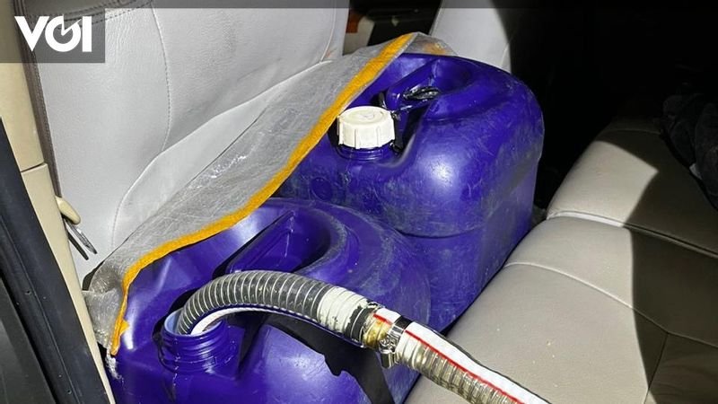 Di bagian belakang mobil, petugas menemukan kotak besar yang digunakan sebagai tempat penampungan solar.
