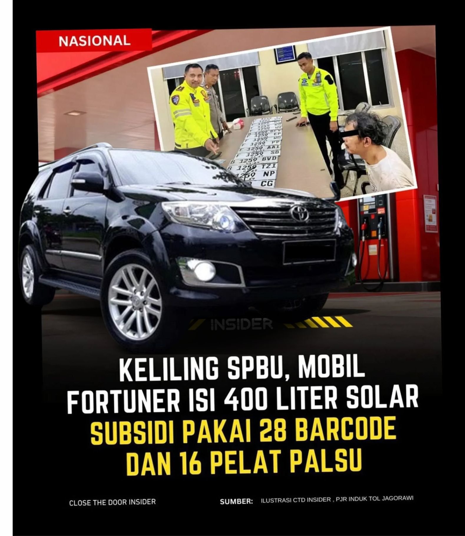 Seorang sopir Toyota Fortuner berinisial DP (23) ditangkap polisi di Tol Jagorawi karena kedapatan menimbun dan menyalahgunakan solar bersubsidi menggunakan tangki yang sudah dimodifikasi.