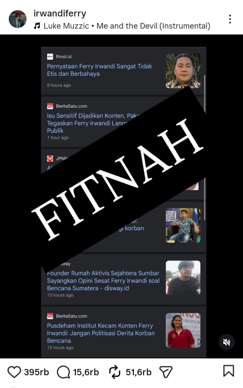 Berikut pernyataan Ferry Irwandi di akun Instagramnya (8/12/2025):