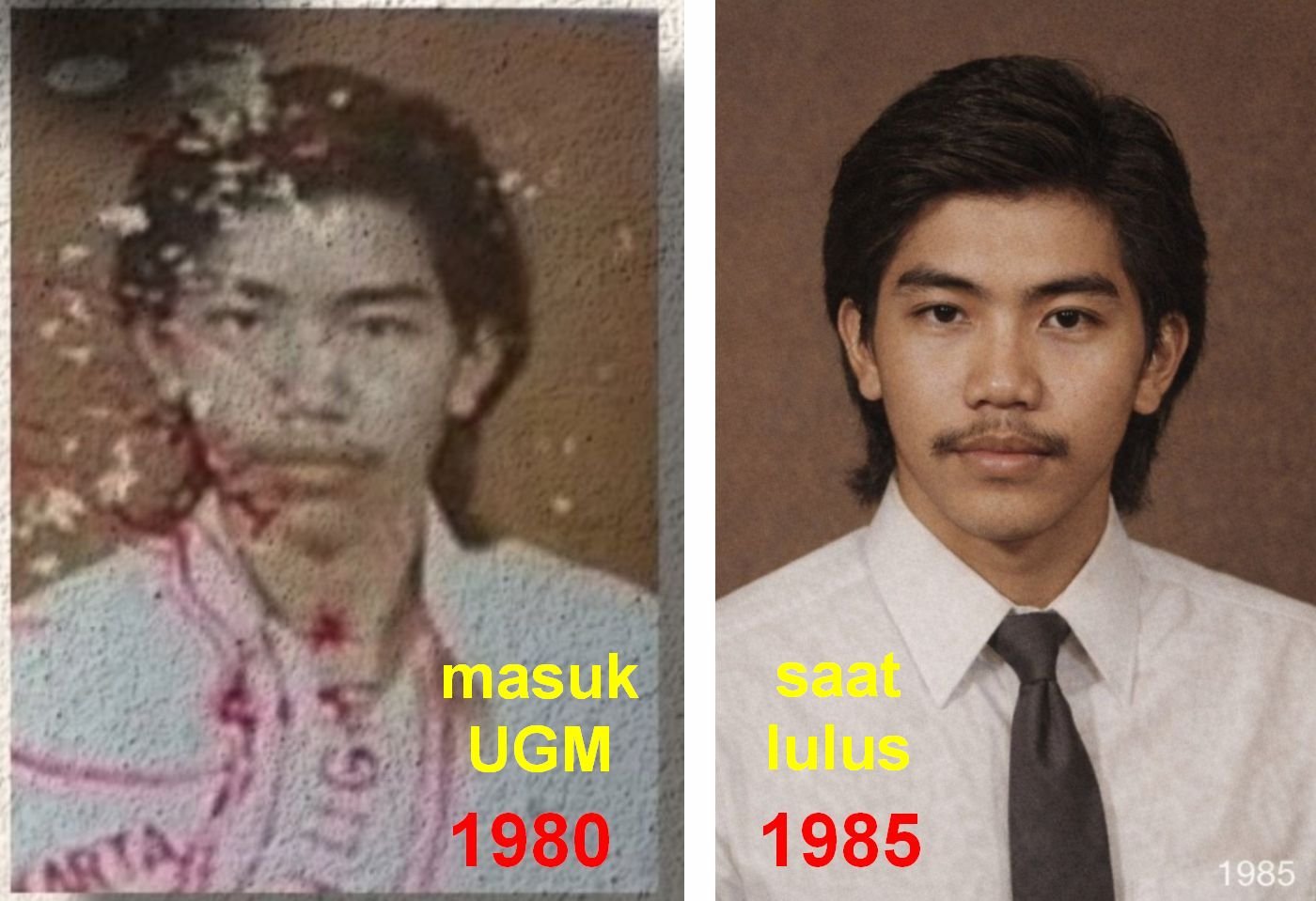Dengan paparan saya di atas, maka dengan melihat kedua foto ini, anda bisa menarik simpulan, jika wajah Joko Widodo Ketika “diterima” di Fakultas Kehutanan UGM tahun 1980 adalah foto yang sebelah kiri, maka ketika dia “wisuda” 5 tahun kemudian, wajah yang akan tampil di foto adalah seperti pada foto sebelah ini. Bukannya wajah entah siapa dengan kacamata, bibir tebal, dan kumis dicomot sembarangan.