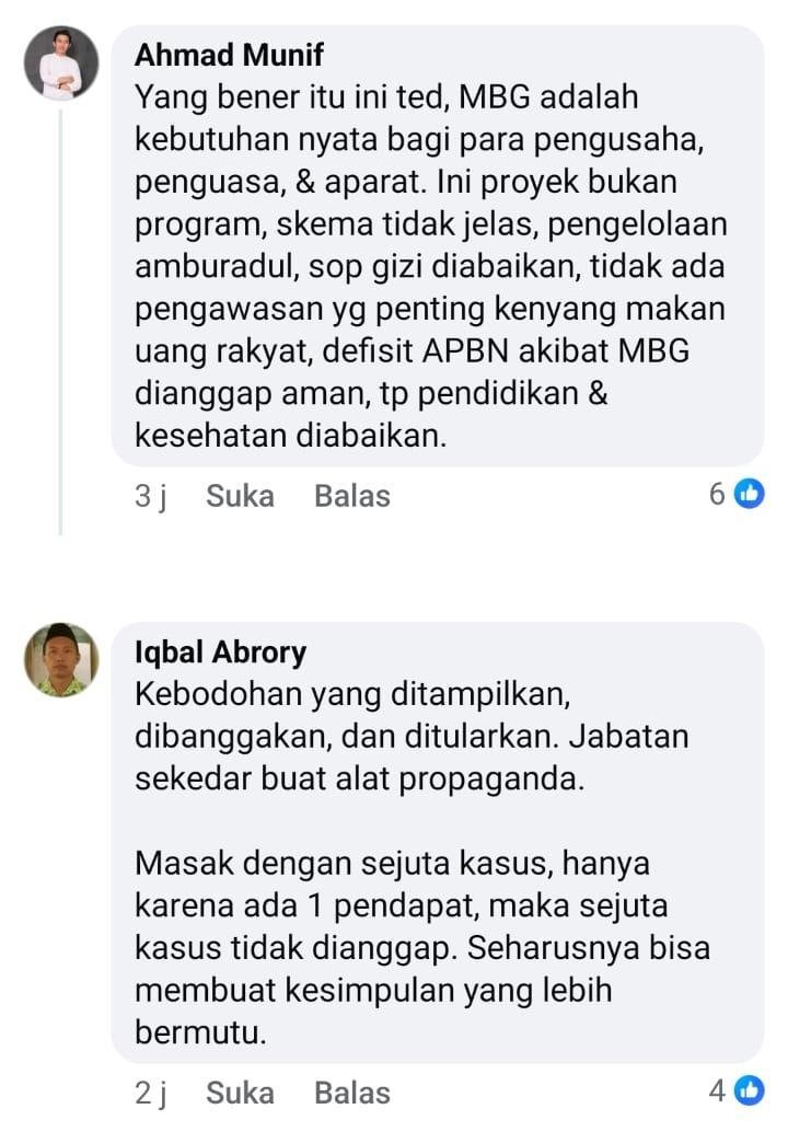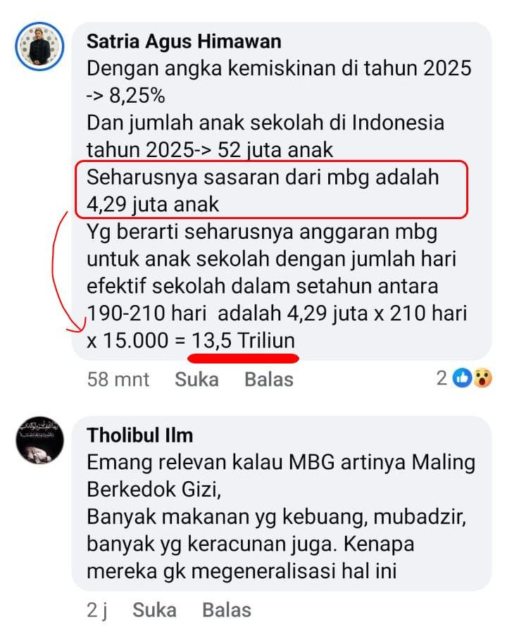 kalau MBG bener-bener di “Daerah terpencil”, dan “anak dari keluarga miskin”, maka gak banyak yang protes pak … lha SDIT, SMPIT yang uang masukan belasan juta dan daerah perkotaan malah jadi fokus MBG,. kenapa ? karena murah, mudah dan banyak sarana dan prasaranya, supaya kemanfaatan nya bener-bener buat … yang punya …
