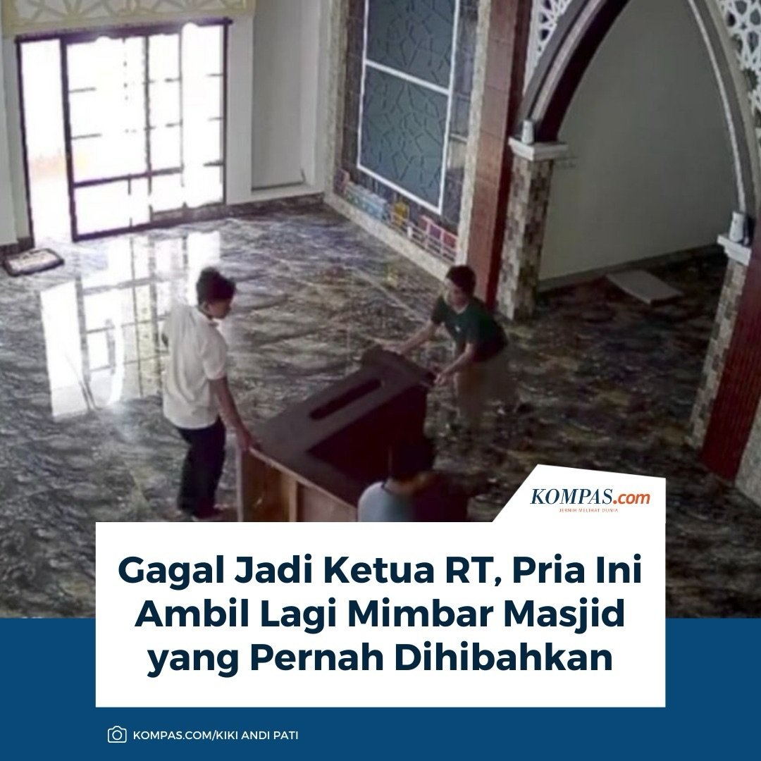 Seorang warga Kelurahan Kambu, Kendari, Sulawesi Tenggara, mengambil kembali mimbar masjid yang dihibahkannya tanpa sepengetahuan pengurus masjid, Minggu (21/12/2025).