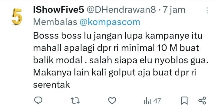 Jika dibandingkan dengan upah minimum di DKI Jakarta sebesar Rp 5,39 juta per bulan, pendapatan anggota DPR mencapai 42 kali lipat.