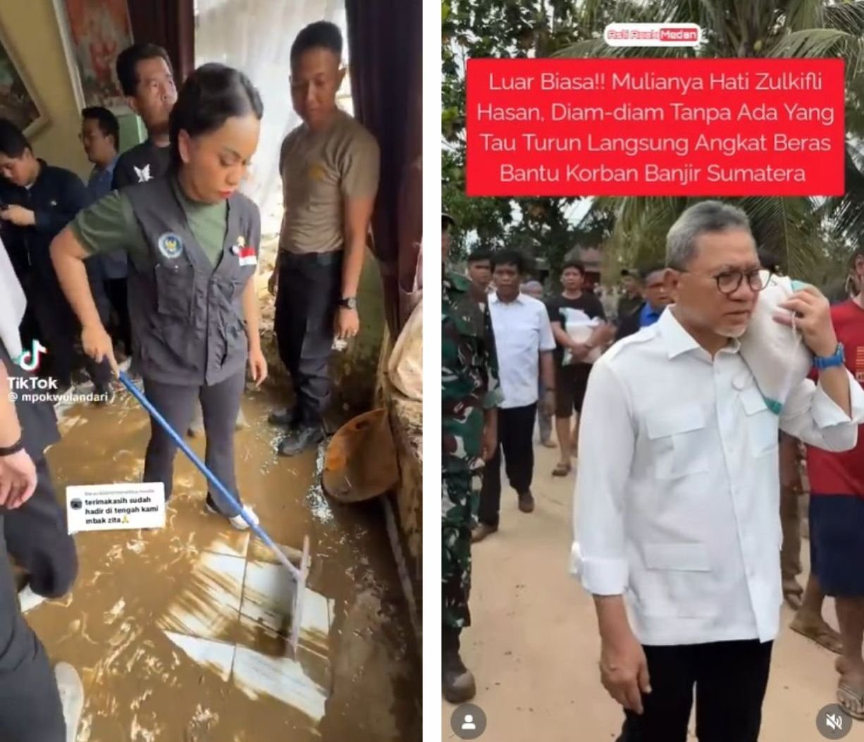 SEKARANG GILIRAN ANAKNYA, YANG DULU HEBOH PAMER STARBUCKS DI MASJIDIL HARAM, KINI PAMER NYAPU LUMPUR DI RUMAH WARGA KORBAN BENCANA BANJIR SUMATERA.
