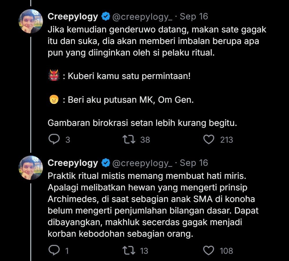 Nah, Supriyadi ini yang mengaku bahwa burung-burung itu hendak dibawa ke solo untuk dijadikan sebagai medium dalam ritual mistis pesugihan sate gagak. Katanya, puluhan gagak hitam itu dipesan oleh sejumlah paranormal di Solo.