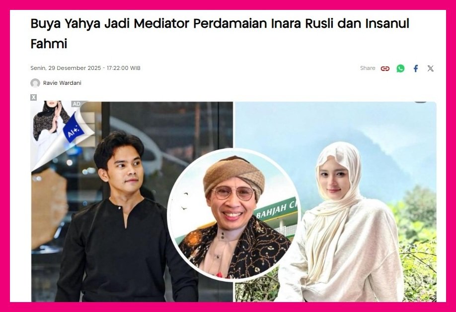 Penceramah Buya Yahya terlibat dalam proses perdamaian antara Inara Rusli dan Insanul Fahmi. Apa peran Buya Yahya di rumah tangga pasangan nikah siri ini?