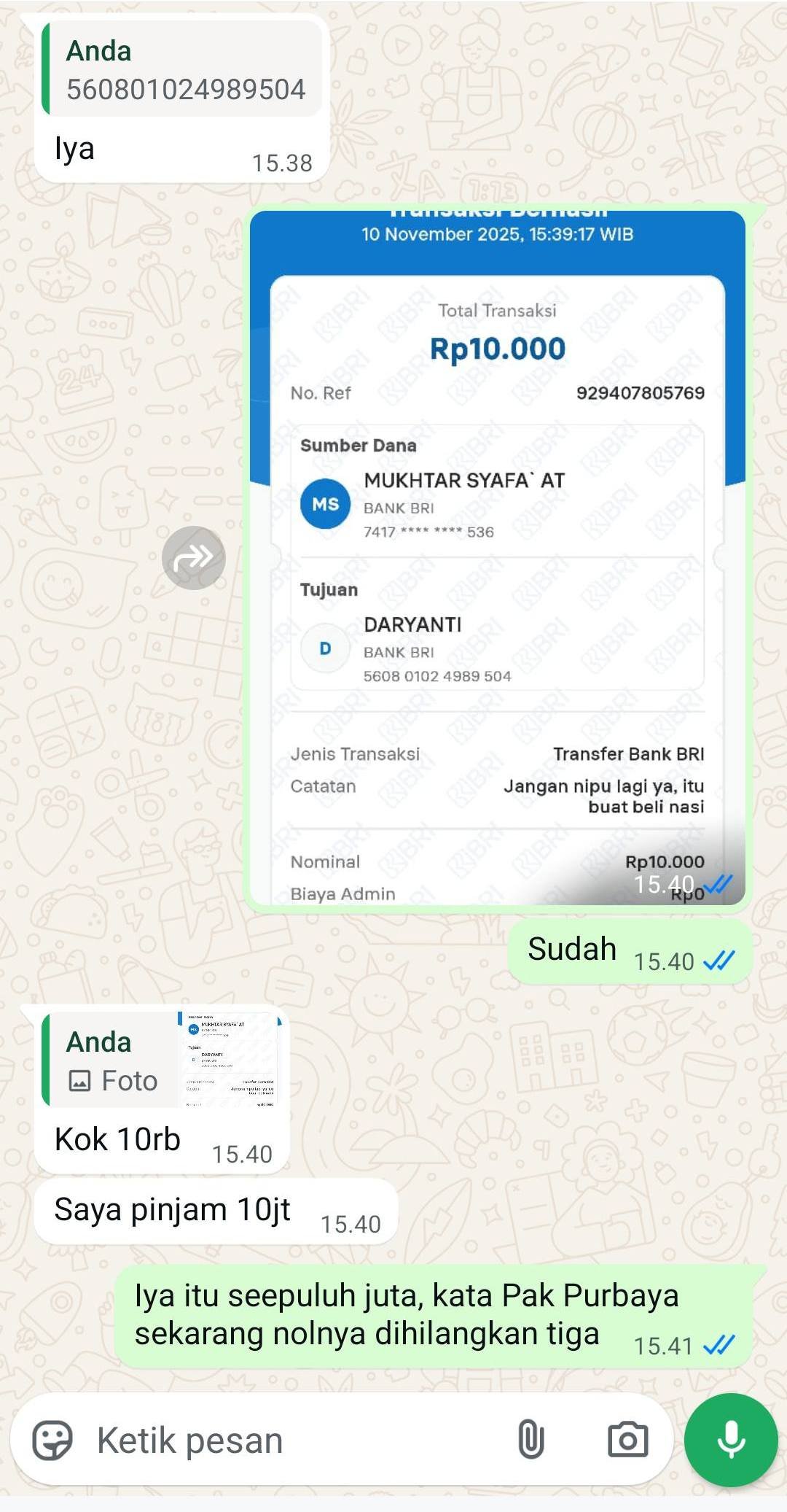 “Gara-gara Pak Purbaya Redenominasi rupiah, saya kehilangan 10 Juta, oleh penipu yang ngehack nomor teman 🤣🤣”