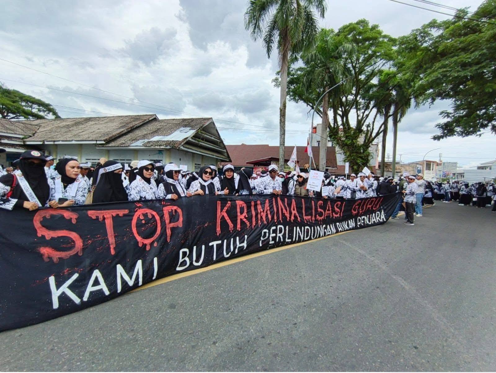 Kemarin, seluruh guru di Luwu Utara melakukan demonstrasi di kantor DPRD dan Kantor Bupati menolak PTDH terhadap kedua guru SMAN 1 Luwu Utara sebagai respon dan keprihatinan bersama.
