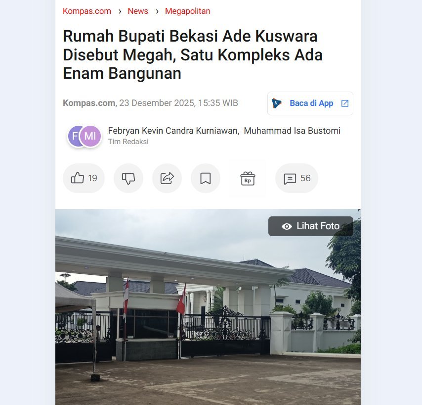 Jadi gimana pas pilkada, pileg kemarin? Oooh, terima amplop? Sembako? Kaos? Ooohhh…. bego sih kamu. Cuma dapat duit secuil. PEJABAT-PEJABAT itu pesta pora duit MILIARAN. Bahkan ada yg punya konsesi tanah ratusan tibu hektar. Kalau cuma rumah Bupati Bekasi kayak di foto ini sih keciiiill.