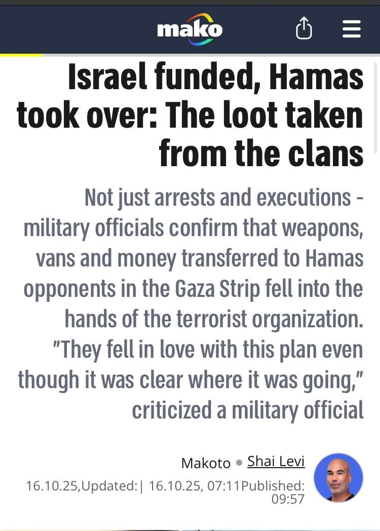 🔴Sumber militer Israel: Hamas menyita sedikitnya 45 truk, yang berisi ratusan senapan Kalashnikov, senapan mesin, amunisi, dan granat yang dipasok oleh Israel kepada kolaborator (para pengkhianat/londo ireng) dari klan di Gaza, selain uang tunai yang ditransfer.