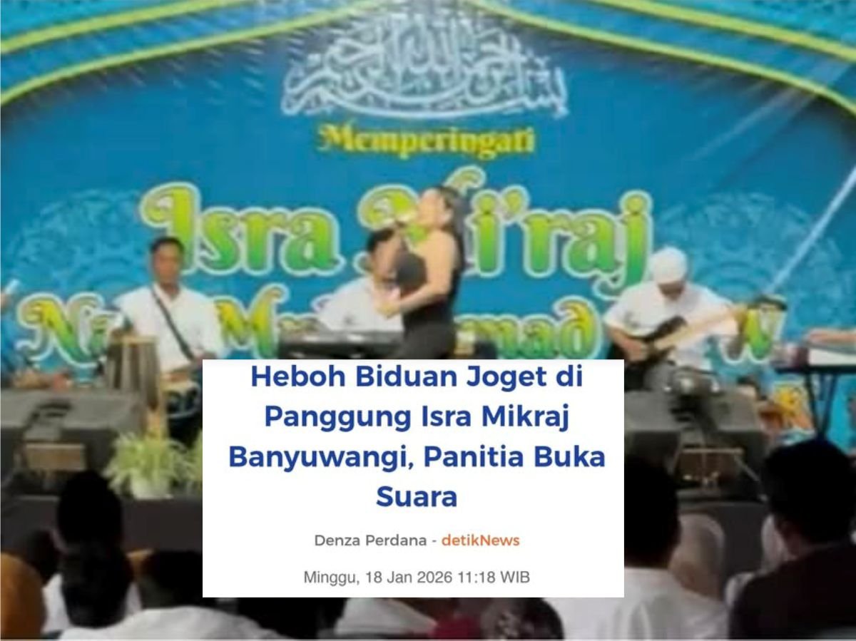 Jadi bagaimana bisa, setelah Acara Isra Miraj, di panggung masih ada tulisan Nabi Muhammad, dibawah masih banyak yang berpeci dan sarungan. Ada penyanyi erotis?
