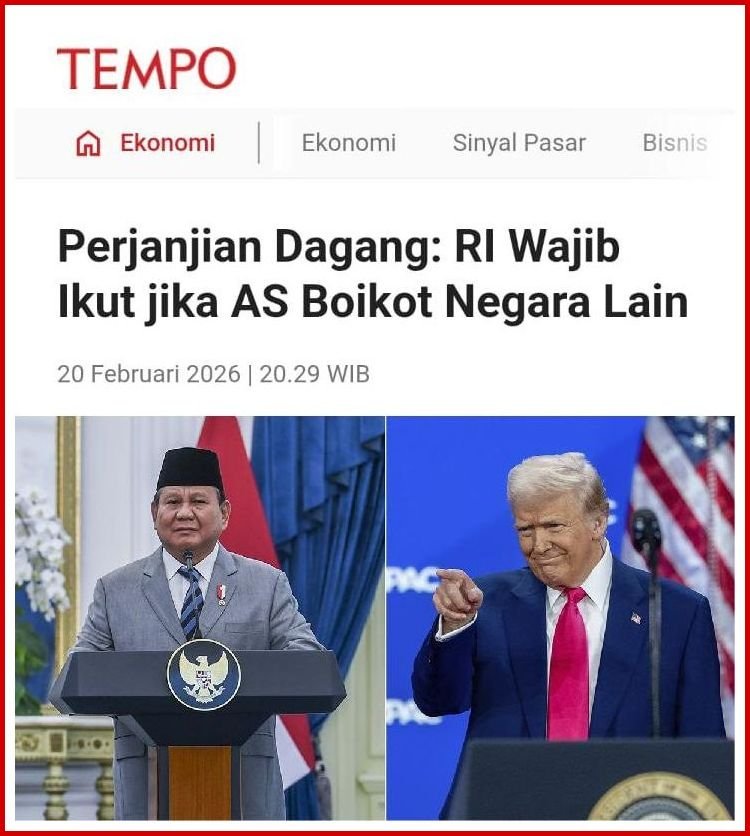 Perjanjian Dagang: RI Wajib Ikut jika AS Boikot Negara Lain