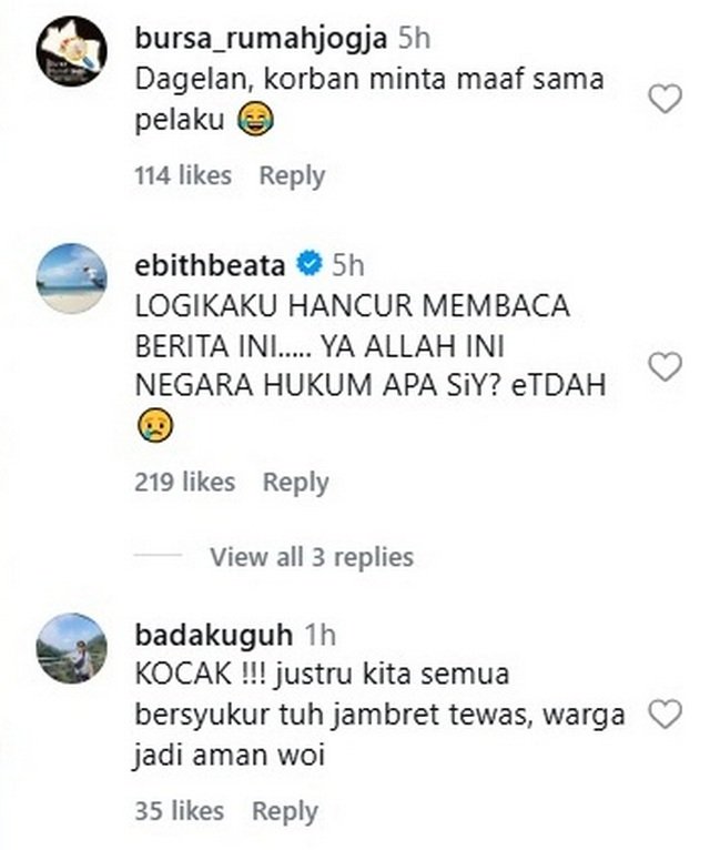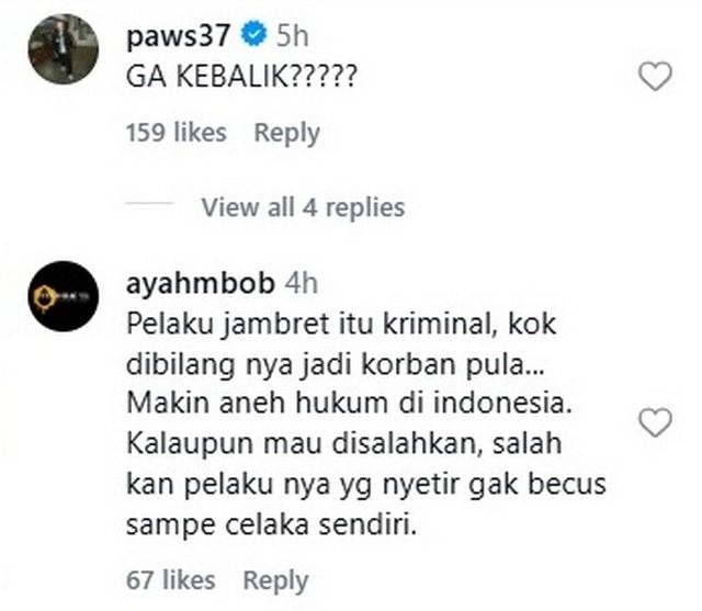 “Kami melakukan seperti ini untuk memberikan kepastian hukum terhadap tindak pidana yang ada ini. Jadi kalau kami nurutin apa namanya mungkin orang, ‘Oh, kasihan’, mungkin ya, ‘Oh kasihan terhadap ini, korban jambret. Kenapa jadi tersangka?’,” ucapnya.