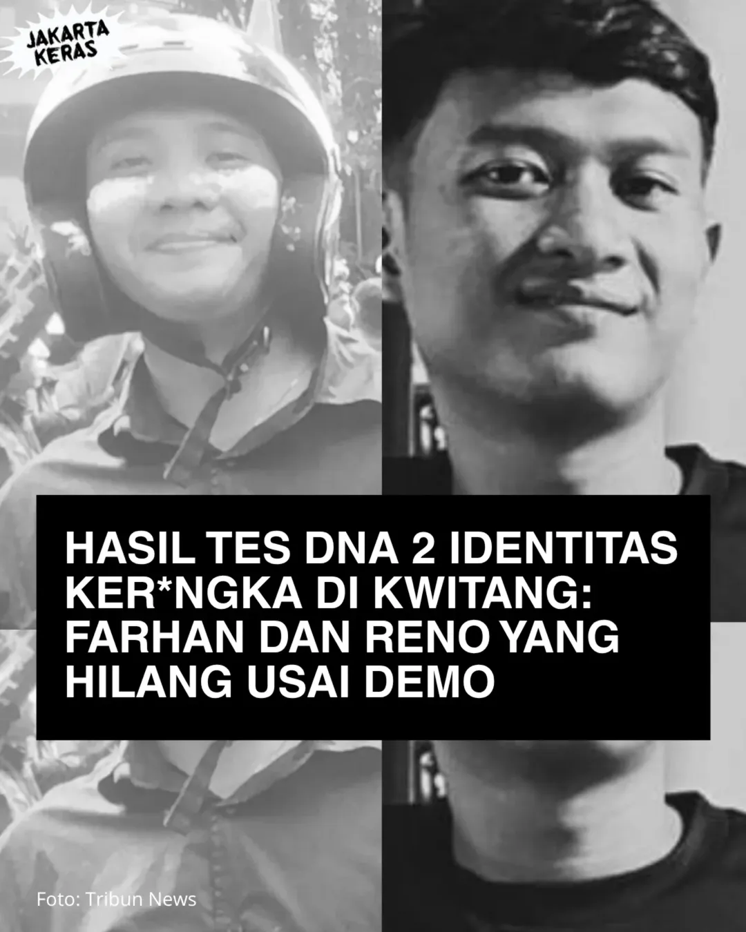 Asap hitam dari Gedung Astra Credit Companies (ACC) Kwitang mungkin telah lama sirna, tapi bara kisah dua pemuda yang hilang usai aksi demonstrasi di ibu kota kini justru membara kembali. Setelah berbulan-bulan tanpa kabar, Kepolisian akhirnya mengungkap identitas dua kerangka manusia yang ditemukan di reruntuhan gedung itu: mereka adalah Reno Syahputra Dewo dan Muhammad Farhan Hamid.