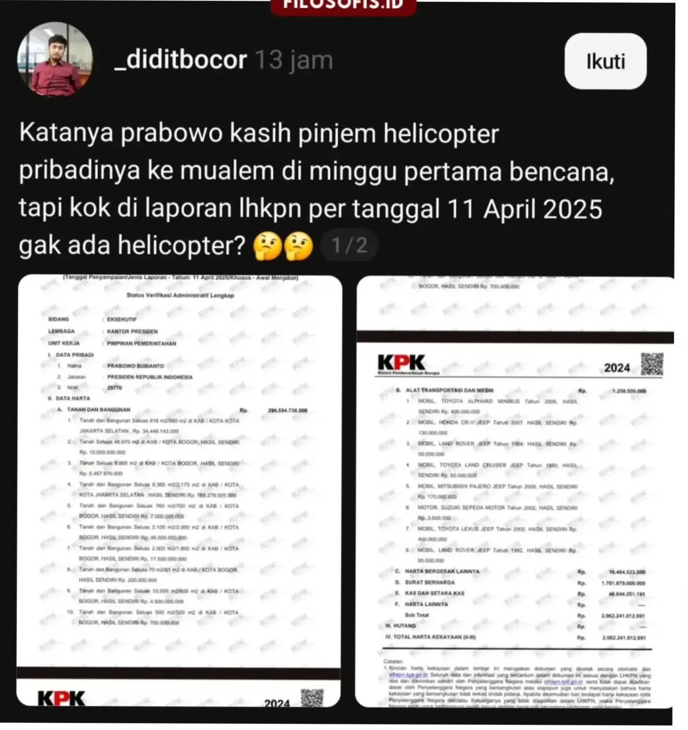 Hayo gimana itu maksudnya si Teddy, Helikopter pribadi kok nggak tercantum dalam LHKPN terakhir?