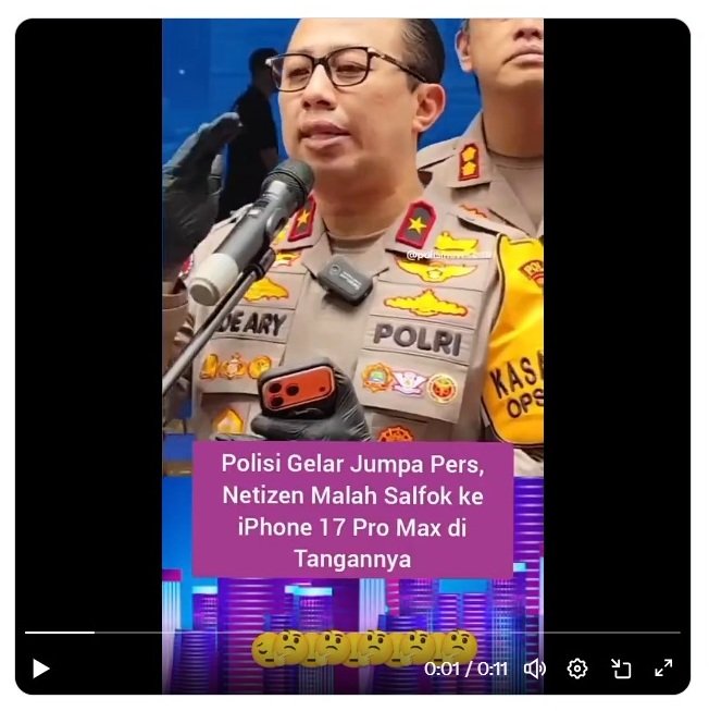 Brigjen Ade Ary disorot lantaran terekam memegang sebuah handphone yang sangat mirip dengan iPhone 17 Pro Max.