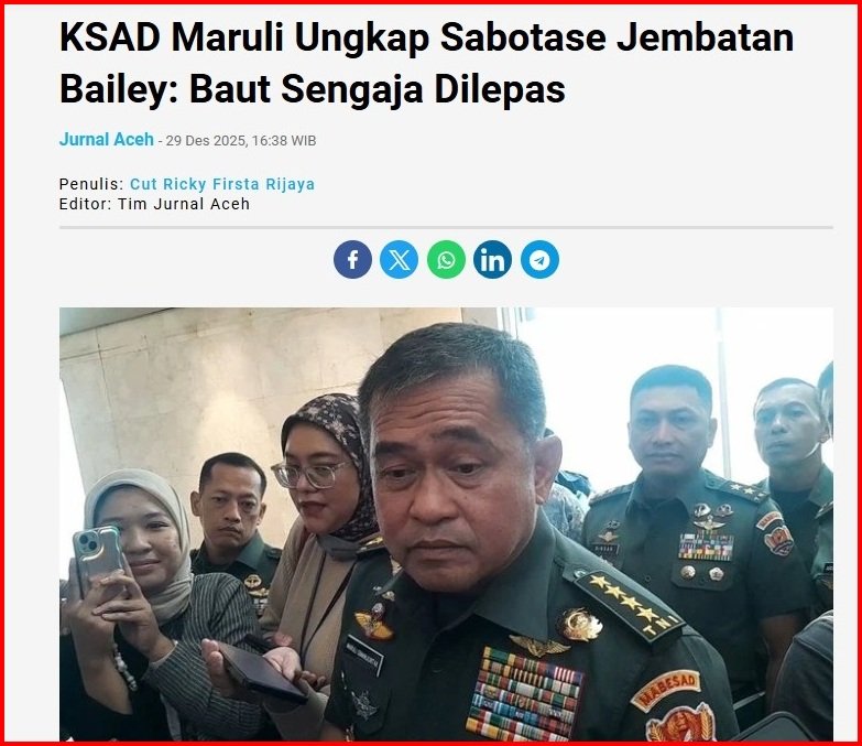 Mengapa KSAD menggunakan istilah ‘sabotase’ untuk menyatakan ada kasus hilangnya baut jembatan bailey di Aceh? Apakah Maruli sedang mengarahkan ke satu kelompok pemberontak? Siapa? Ada gerakan pemberontakan baru di Aceh?
