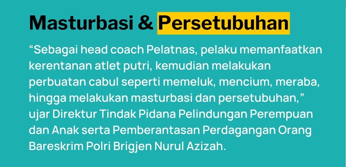 “Modus diduga menyalahgunakan kewenangan serta memanfaatkan kerentanan atau keadaan atlet putri untuk melakukan perbuatan cabul hingga persetubuhan,” tambahnya.