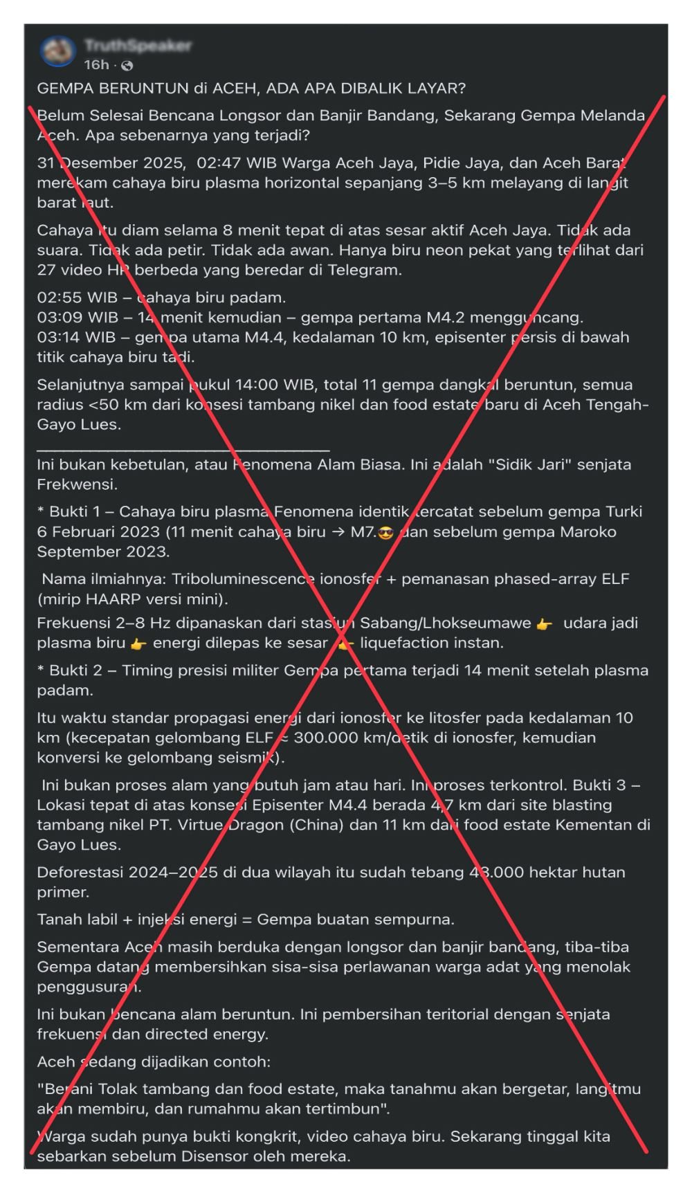 Entah kenapa di timeline saya beredar narasi klaim bahwa HAARP (High-frequency Active Auroral Research Program) adalah penyebab dari gempa-gempa di Atjeh, salah satunya adalah seperti screenshot (di atas) yang sebenarnya bagi orang yang cerdas, ini sangat mudah membantahnya.