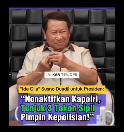 Mantan Kepala Bareskrim Polri Komisaris Jenderal Polisi Susno Duadji menyampaikan ide gila ke Presiden Prabowo agar reformasi Polri berhasil, tidak sekedar gimmick.