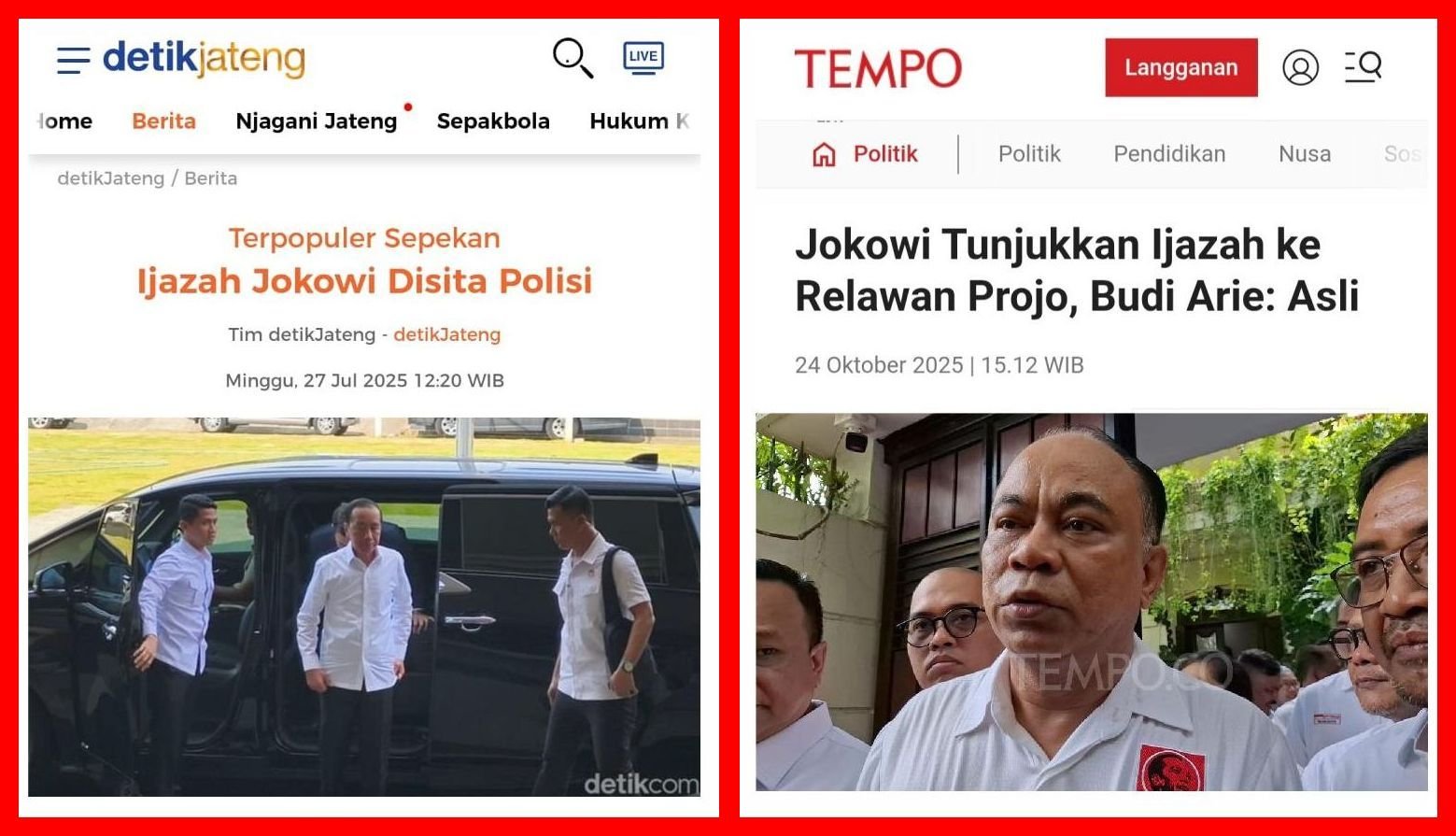 Berita baru-baru ini agak aneh. Katanya ijazah sudah diserahkan Jokowi ke Penyidik Polda Metro Jaya saat diperiksa di Mapolresta Solo, Juli lalu. Kok, kini malah diperlihatkan ke Projo saat berkunjung ke rumah Jokowi? Aneh bin ajaib.