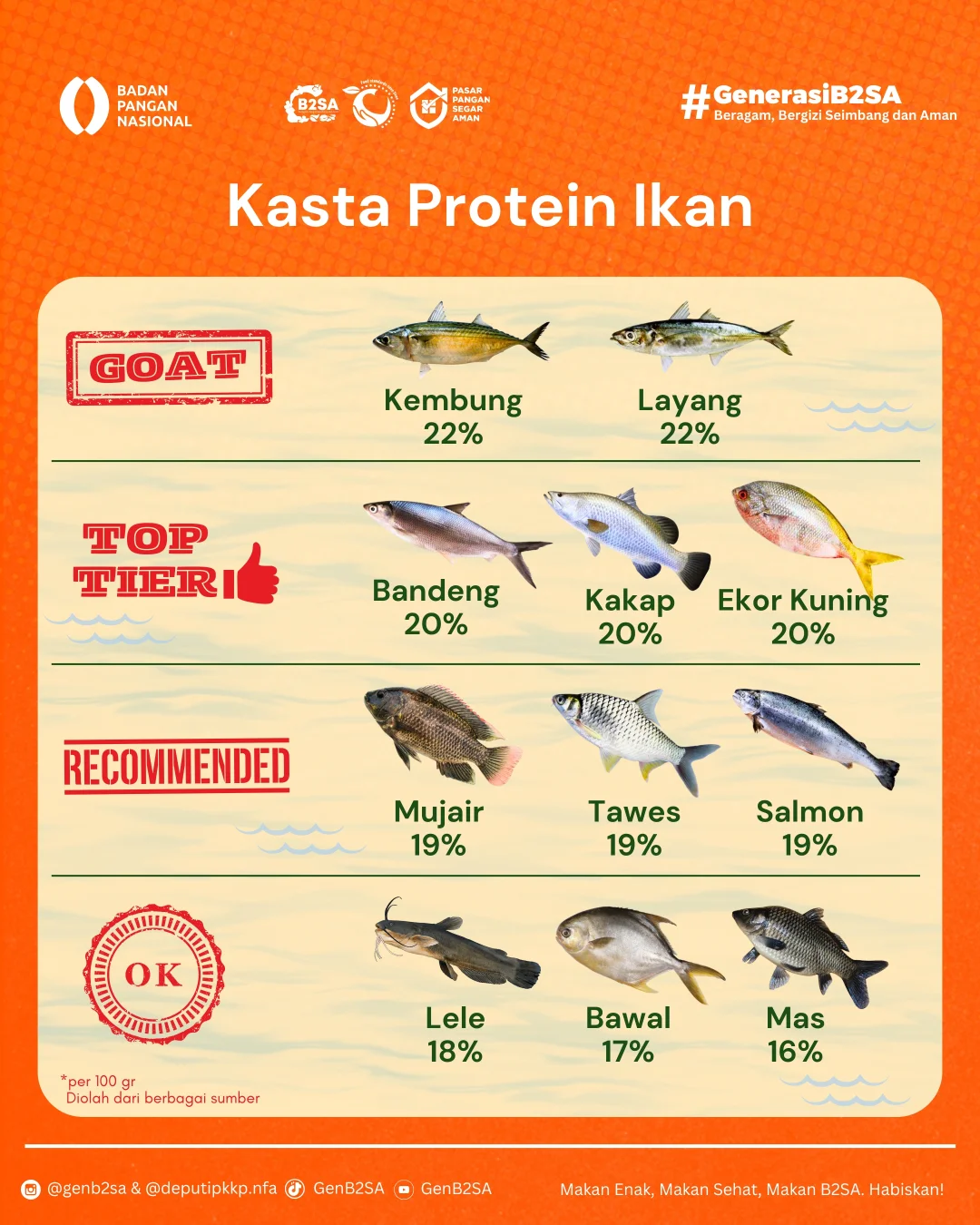 Kasta Protein Ikan paling tinggi adalah ikan Kembung dan ikan Layang yang proteinnya paling tinggi, ngalahin ikan Salmon yang muahaaaal ๐ช