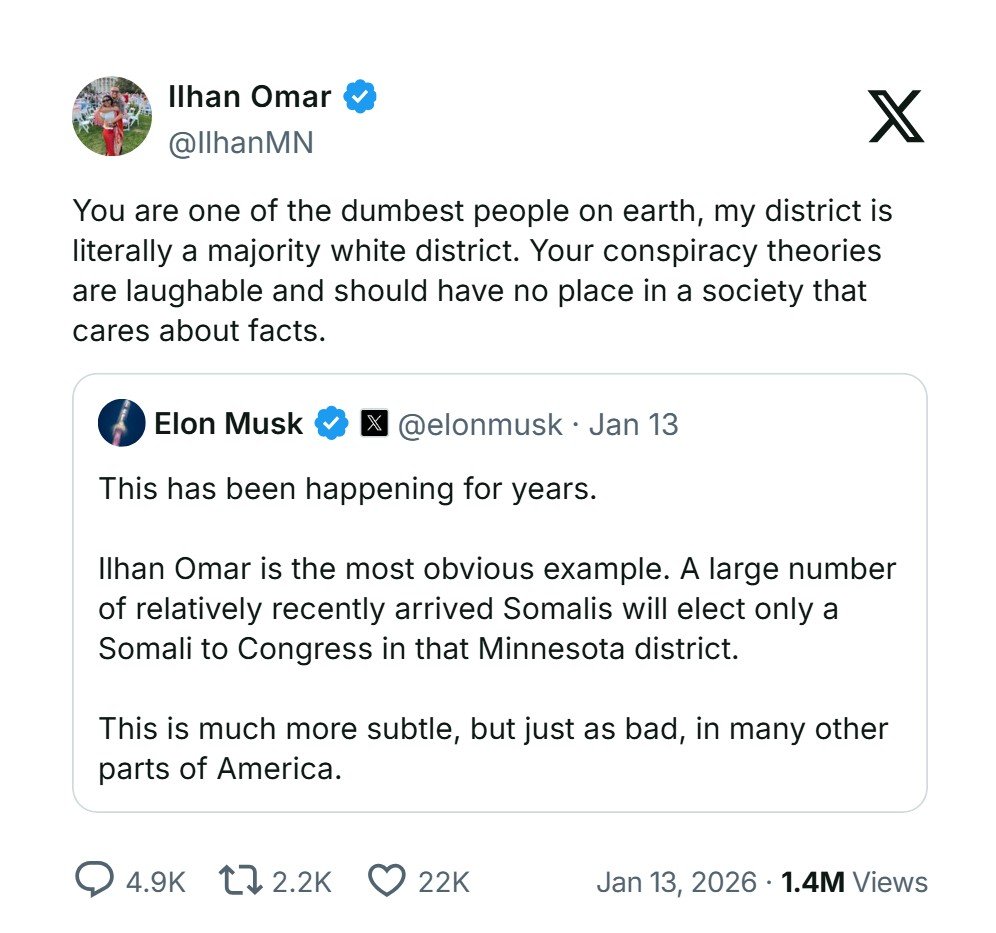 Baru-baru ini di media sosial X, Elon Musk menyerang Ilhan Omar.