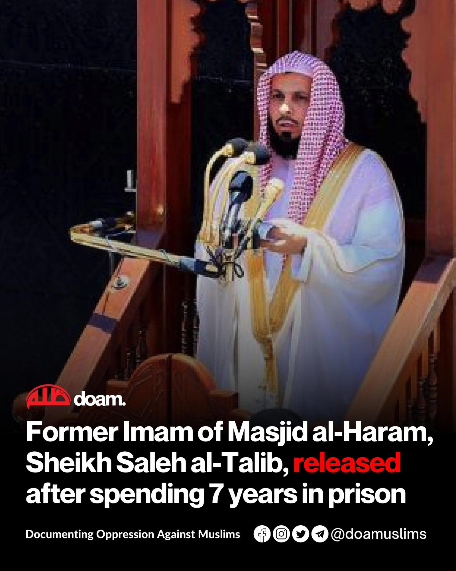 🔴BREAKING! Imam Masjidil Haram di Mekkah, Syekh Dr. Saleh Al-Talib, telah dibebaskan setelah menghabiskan lebih dari tujuh tahun di penjara Saudi.