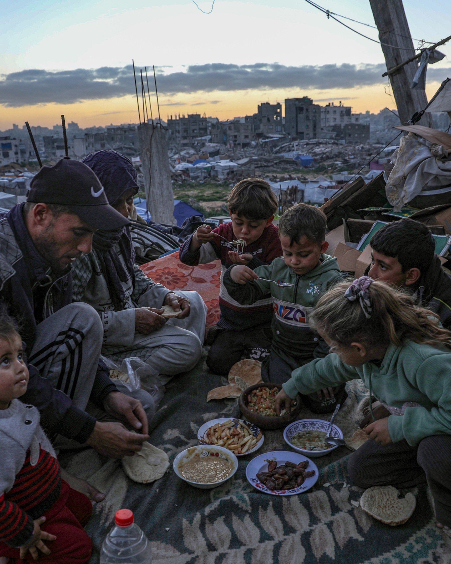 *Foto berjuta makna: Sebuah keluarga pengungsi berbuka puasa Ramadan di Gaza.