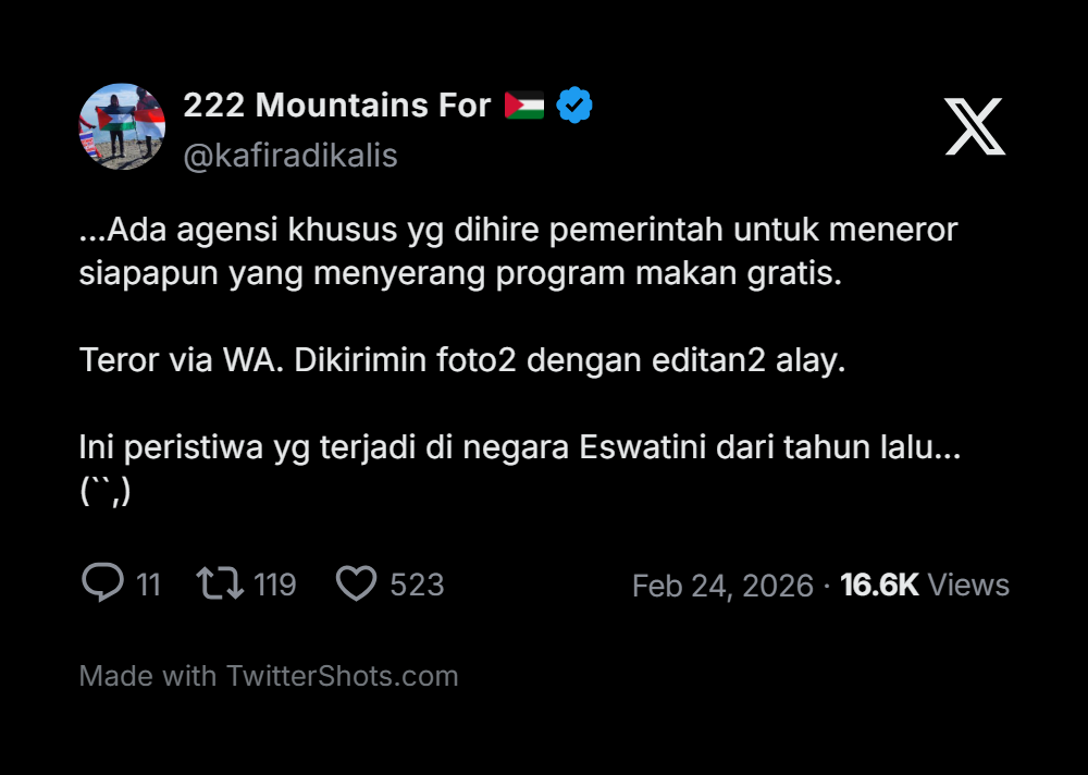 …Ada agensi khusus yg dihire (disewa) pemerintah untuk meneror siapapun yang menyerang program makan gratis.