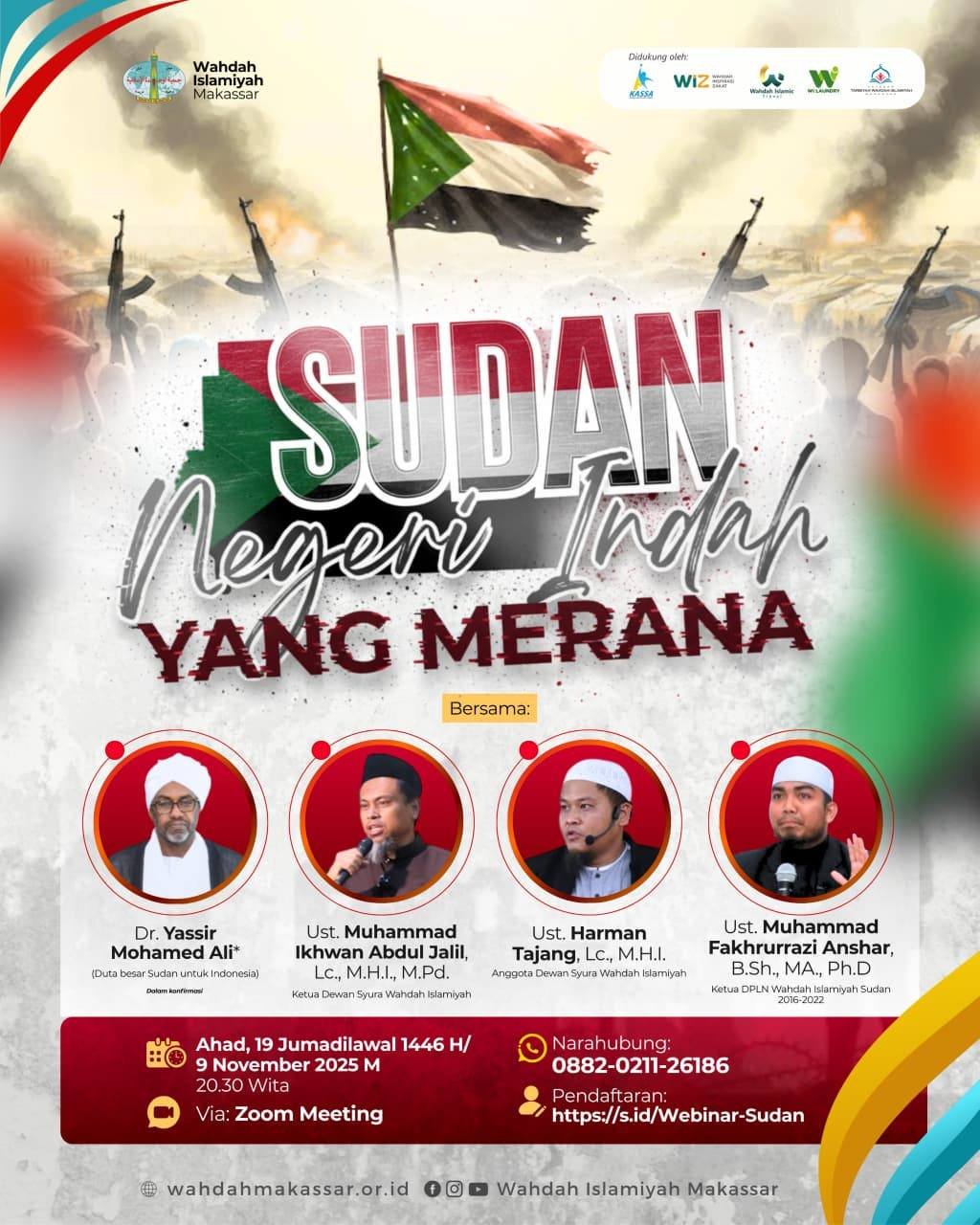Forum Zoom ini diadakan pada Ahad malam (9/11/2025), sekitar jam 20.00, oleh Pengurus DPP Wahdah Islamiyah Pusat, Makassar. Menghadirkan tokoh pimpinan Wahdah, Ustadz Wahdah di Sudan, juga Duta Besar Sudan, Dr. Yasser Mohammad Ali.