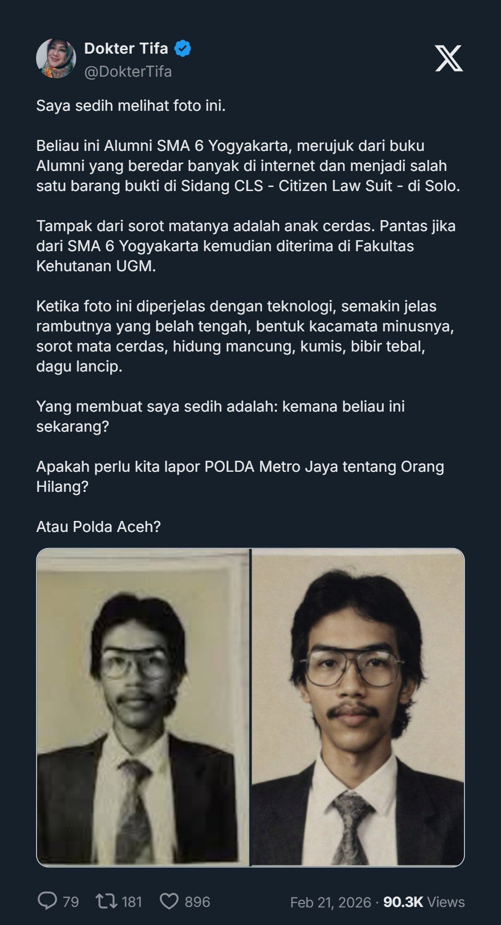 Yang membuat saya sedih adalah: kemana beliau ini sekarang?