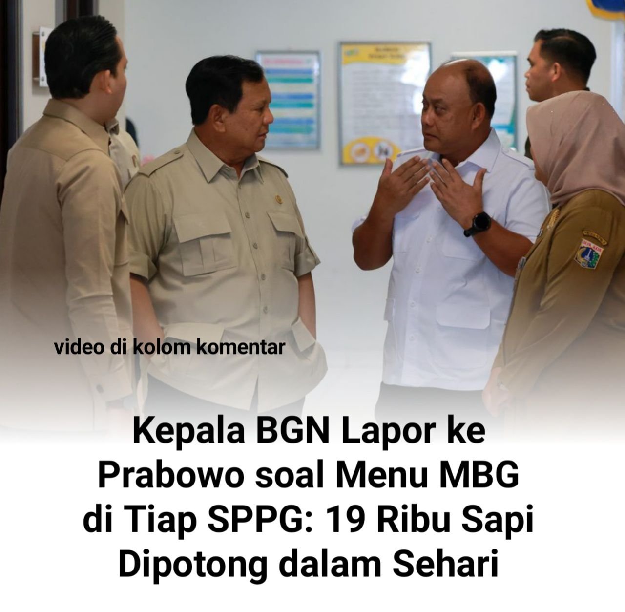 Kepala BGN Lapor ke Prabowo soal Menu MBG di Tiap SPPG: 19 Ribu Sapi Dipotong dalam Sehari
