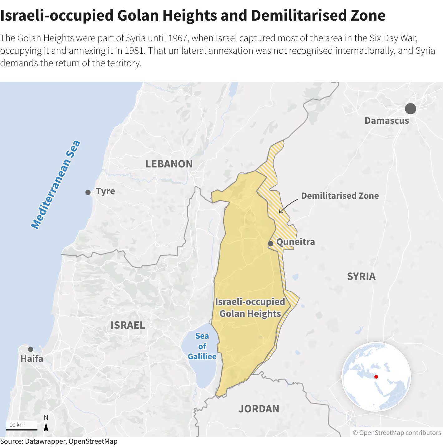 Kalau hari ini ada foto atau video pejabat Israel berdiri di pos militer dekat Quneitra, itu bukan babak baru, sudah bertahun-tahun pos militer Israel berada di sana. Bahkan Pemerintahan Netanyahu pada tahun 2016 pernah melakukan rapat kabinetnya di wilayah Golan.