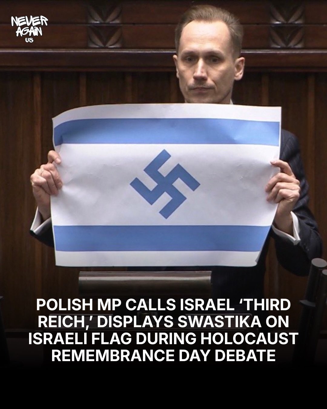 Bukan Israel yang akan memutuskan siapa yang boleh dan tidak boleh duduk di parlemen Polandia. Sejarah telah menunjukkan jalan menuju Nazisme – Polandia sangat mengetahuinya. Oleh karena itu, kami tidak, dan tidak akan, acuh tak acuh terhadap pengulangan sejarah yang saat ini terjadi di Timur Tengah.