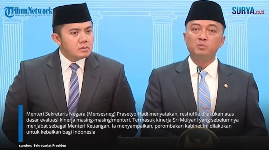 “(SMI) Bukan mundur, bukan dicopot, Bapak Presiden selaku Kepala Negara dan Kepala Pemerintahan, tentunya kita semua paham bahwa beliau memiliki hak prerogatif, maka kemudian atas evaluasi beliau memutuskan untuk melakukan perubahan formasi,” jelas Menteri Sekretaris Negara Prasetyo Hadi.
