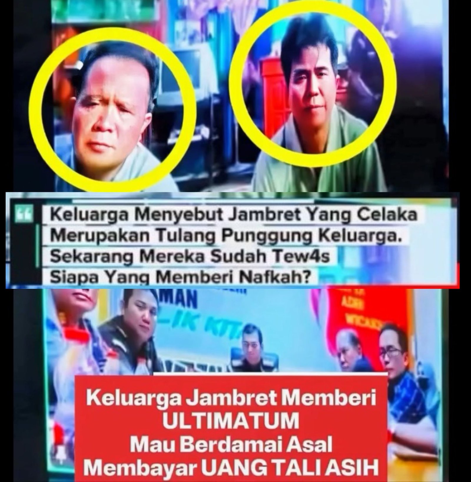 Udah meninggal pun masih dipakai keluarganya jadi alat buat memeras si korban jambretnya. sampe bawa pengacara. sampe ngelibatin pihak² lain.