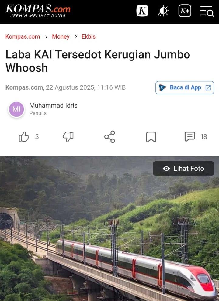 Kinerja PT KAI sebenarnya bagus, tapi karena ada Whoosh akhirnya jeblok