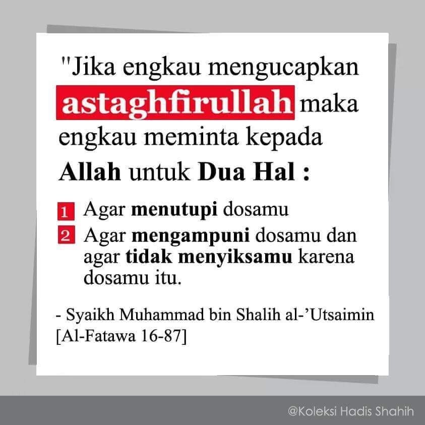 Jika engkau mengucapkan Astaghfirullah, maka engkau meminta kepada Allah untuk dua hal: