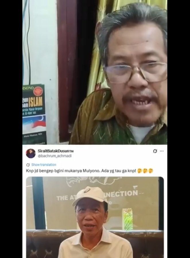 “Jokowi, wajahmu bengkak banget ya. Ini kayaknya foto terakhir meng-close-up wajah Jokowi yang tampaknya tidak seperti biasanya. Bengkak-bengkak di antara pipi, mata, dan lain sebagainya.