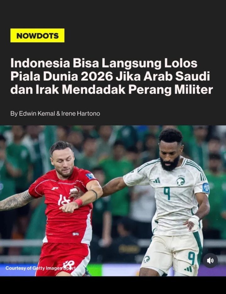 KABAR TERBARU: Indonesia Ternyata Masih Bisa Lolos ke Piala Dunia 2026AdminMinggu, 12 Oktober, 2025RAGAM KABAR TERBARU!! INDONESIA BISA LOLOS KE PIALA DUNIA 2026 KALAU ARAB SAUDI DAN IRAK MENDADAK PERANG 🤣🤣🤣 Jangan LewatkanSah! Islam Makhachev Lebih Hebat dari Khabib NurmagomedovIstanbul dinobatkan sebagai “Kota Paling Menarik di Eropa”Dipecat Usai Bela Palestina, Anwar El Ghazi Menang Gugatan 1,5 Juta Euro VS Klub Bundesliga Mainz 05Terapi Penyakit LGBT dengan “Brain Hacking”Gara-gara Pak Purbaya Redenominasi rupiah, saya kehilangan 10 Juta, oleh penipu yang ngehack nomor temanYusuf Mansur pernah ngaku mau beli YouTube, namanya mau diubah jadi YouSufe