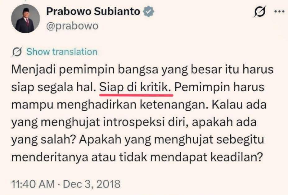 *Sebelum pikun (sebelum masuk Istana jadi hulubalangnya Firaun jawa), kakek yang gagah ini pernah mengatakan seperti twit di bawah ini.