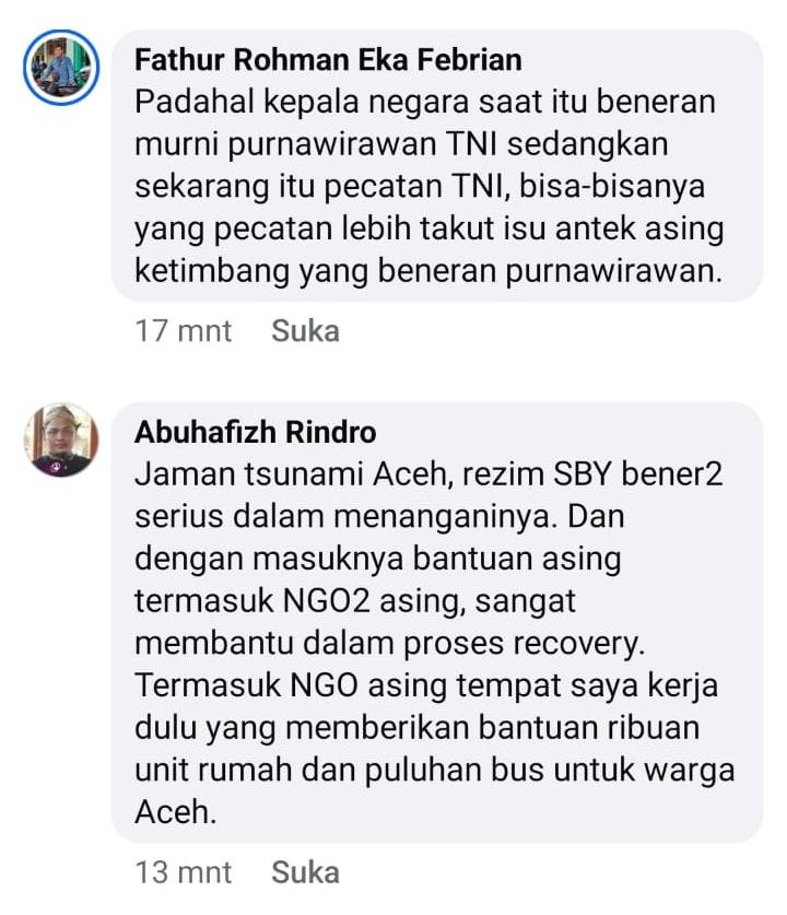 Dan lihat bagaimana dunia merespons. Negara-negara tetangga. Negara-negara jauh. NGO internasional. Tim medis asing. Kapal-kapal perang yang berubah menjadi rumah sakit terapung. Helikopter canggih dari luar negeri. Organisasi kemanusiaan yang bekerja terus menerus untuk menemukan korban dan pemulihan.