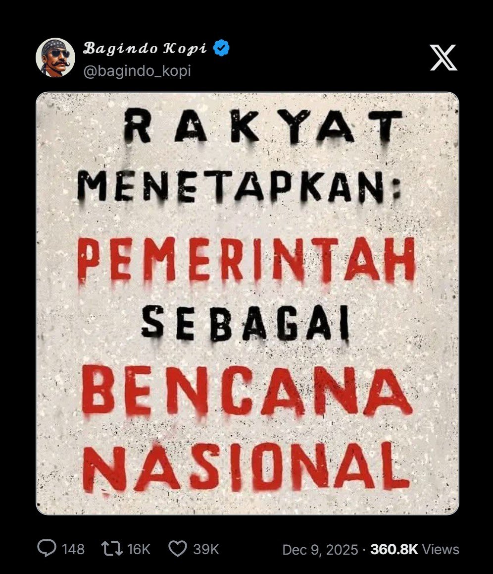 Karena musibah ini TERLALU BERAT, TERLALU LUAS, dan TERLALU LAMBAT untuk ditanggung sendiri oleh provinsi, bahkan oleh negara, jika tidak dimobilisasi total.