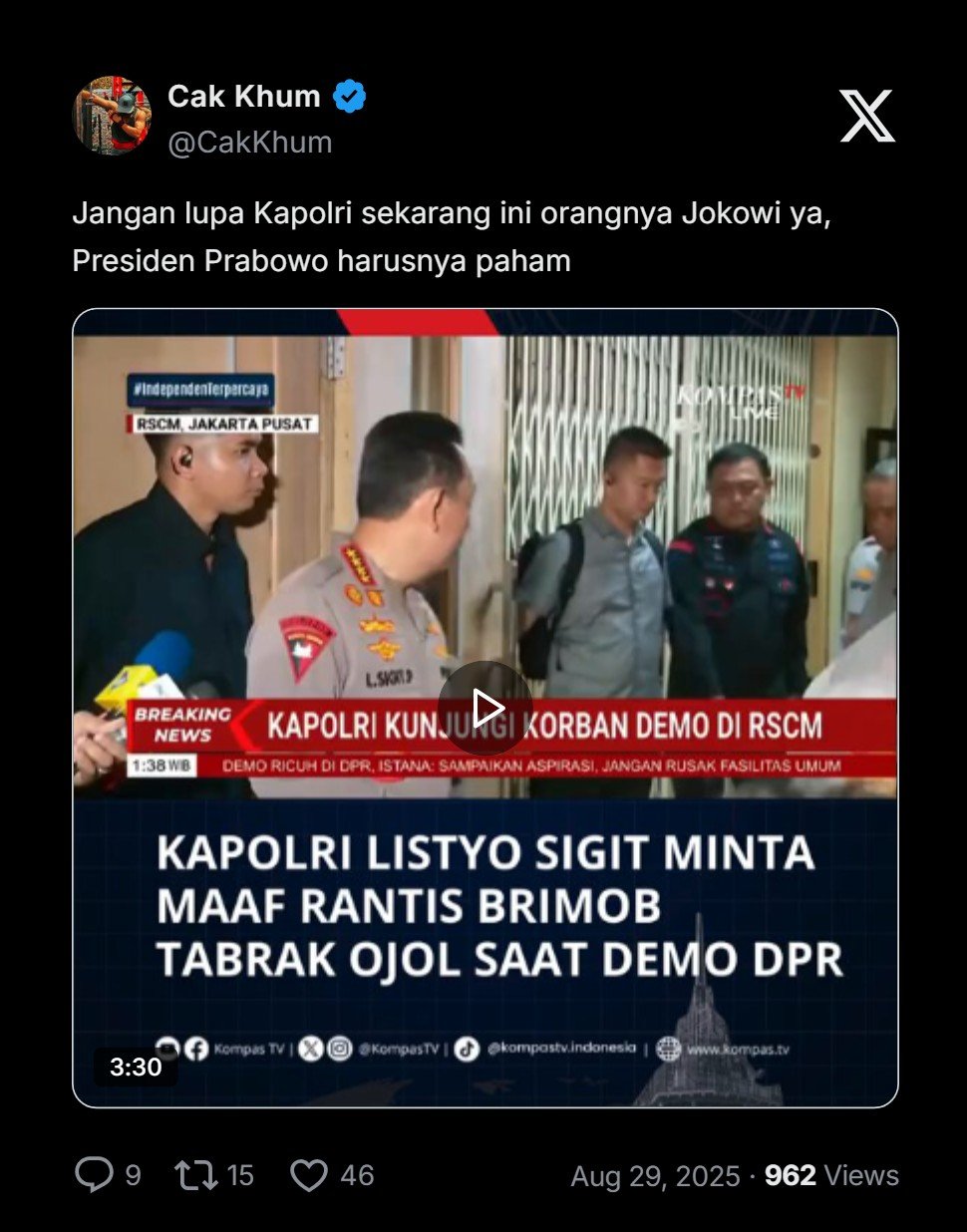 Jangan lupa Kapolri sekarang ini orangnya Jokowi ya, Presiden Prabowo harusnya paham