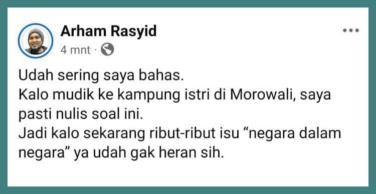 Postingan Arham Rasyid, warga Kendari yang istrinya dari Morowali.