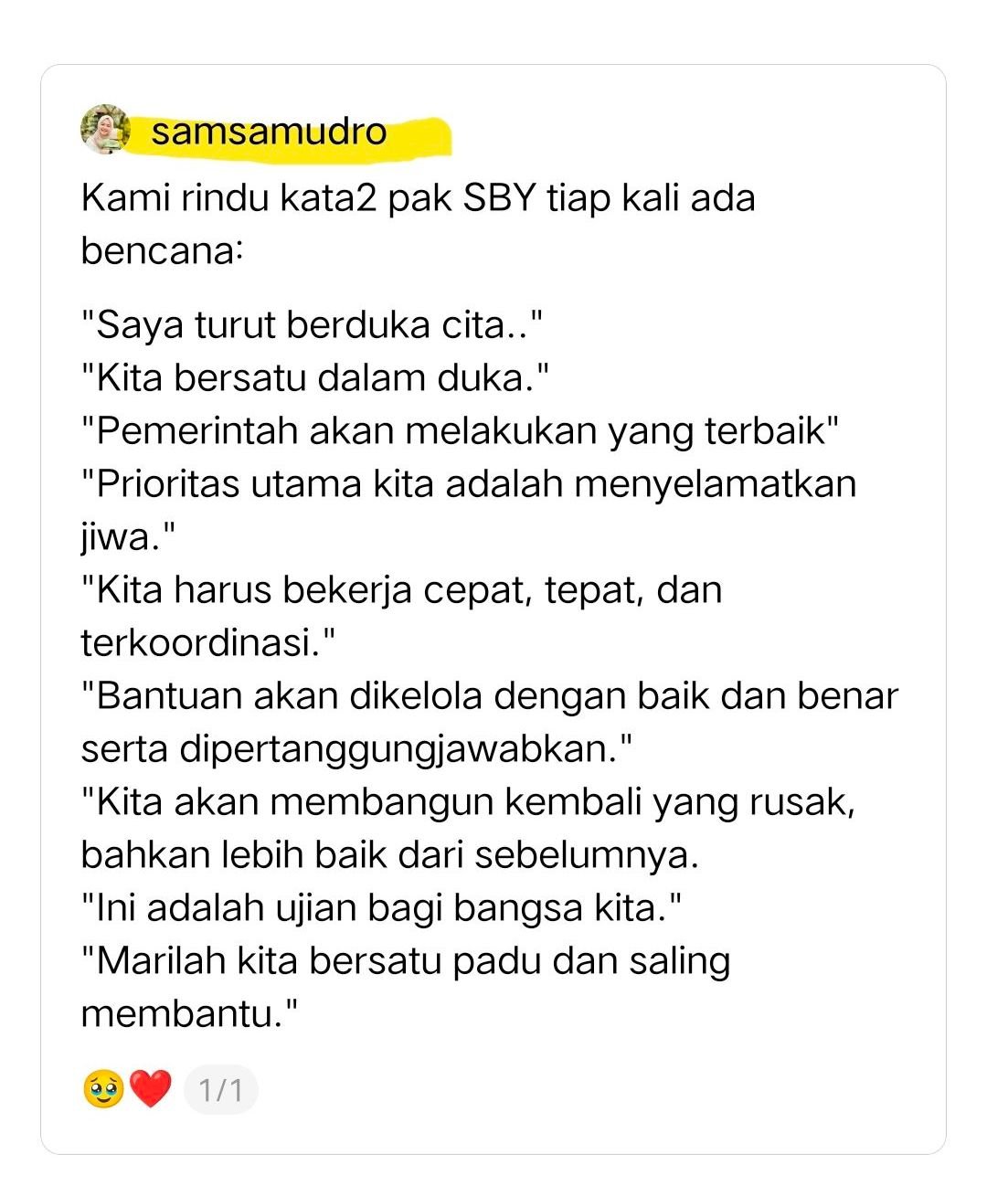 Kami rindu kata2 pak SBY tiap kali ada bencana: