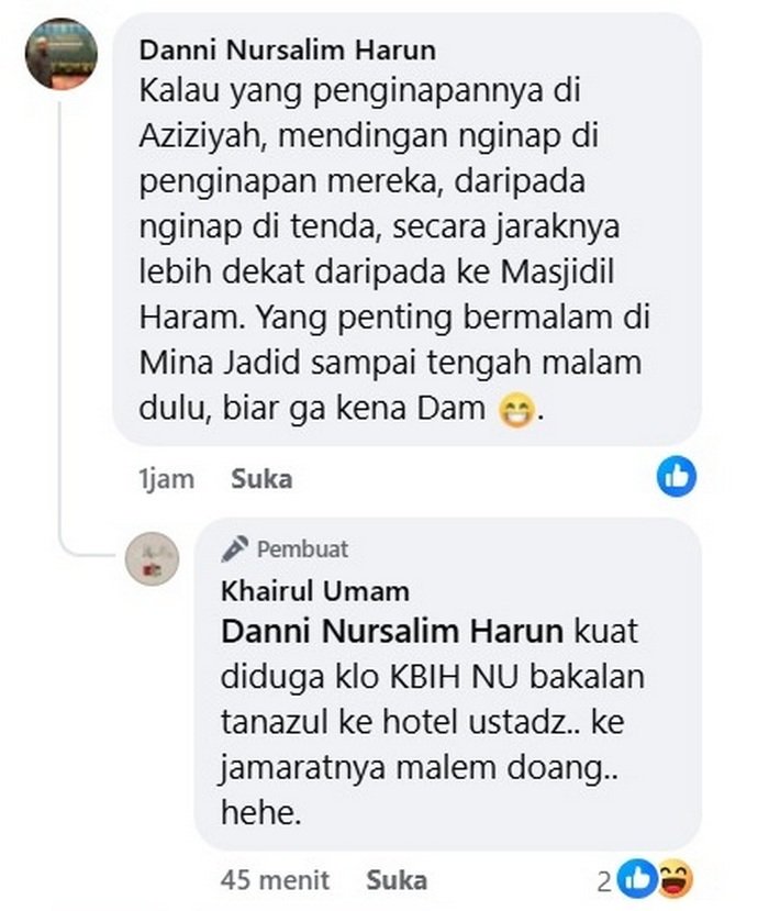 Meski dihukumi sah mabit di Mina jadid tapi ga kebayang sih klo 220.000 jamaah haji reguler numpuk di mina jadid. Semoga pemerintah bisa lobi Saudi agar Indonesia dapat tenda mina yang cukup jalan kaki.